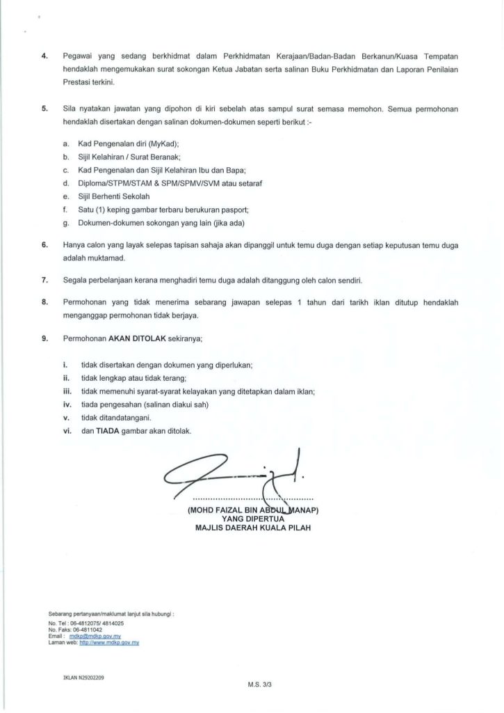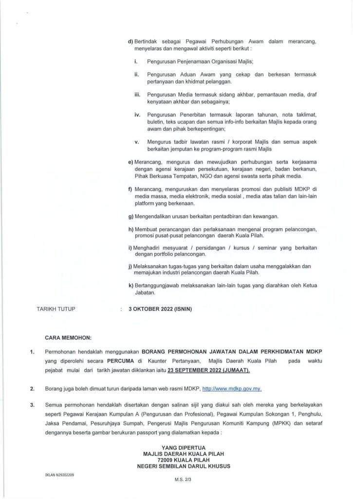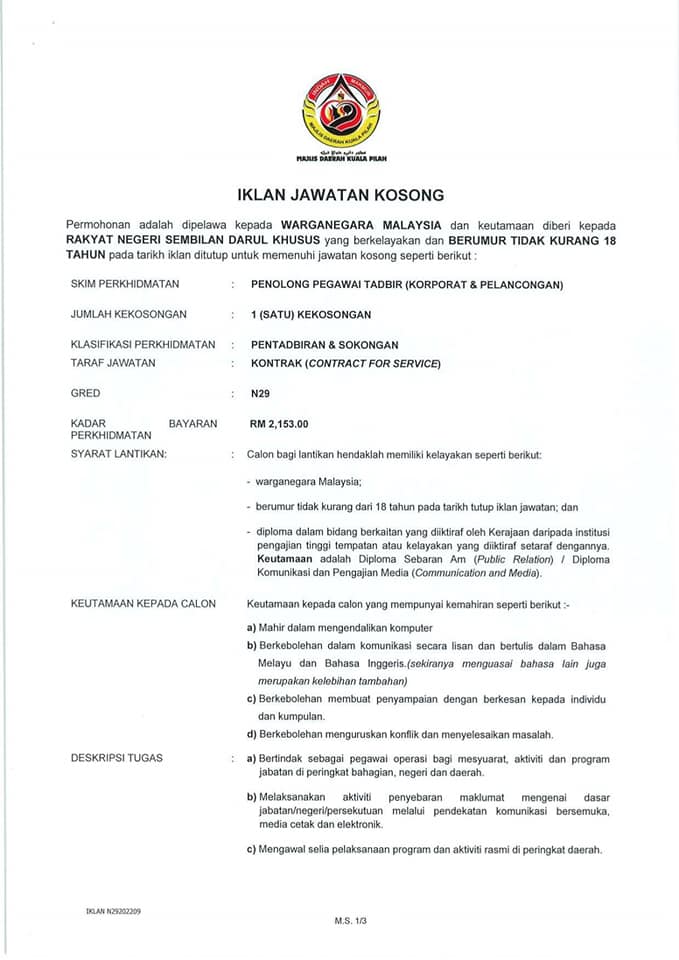 Iklan Jawatan Majlis Daerah Kuala Pilah