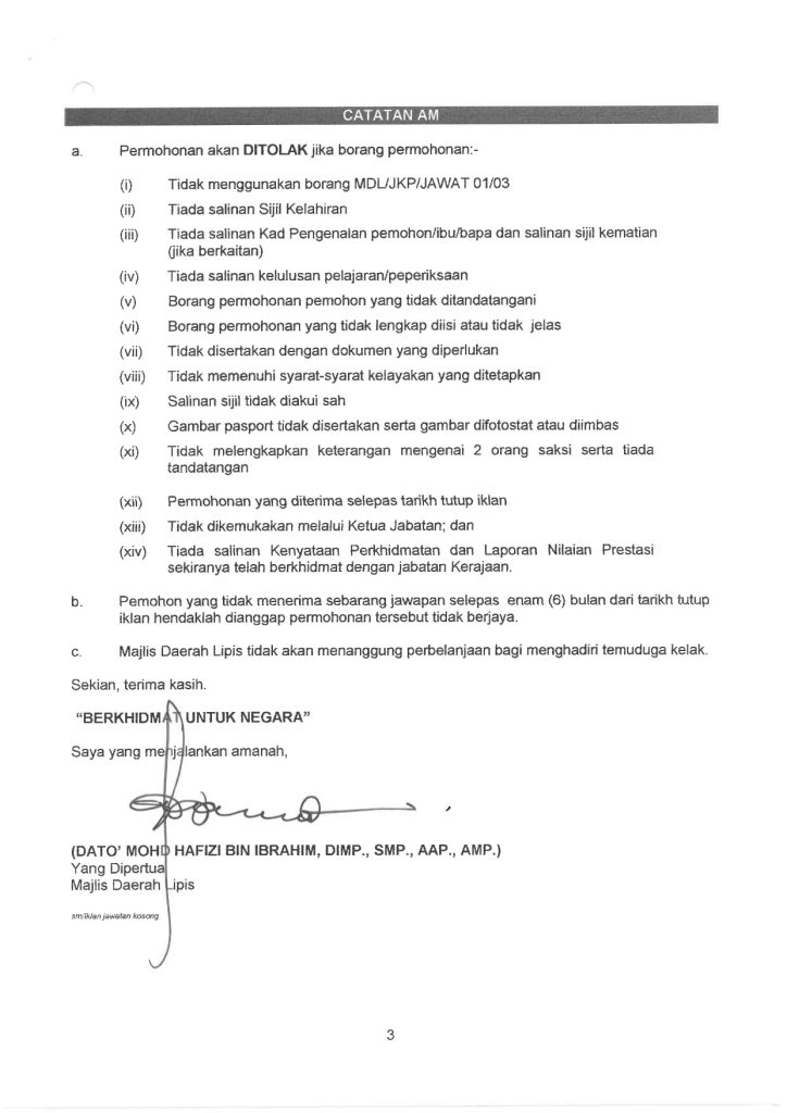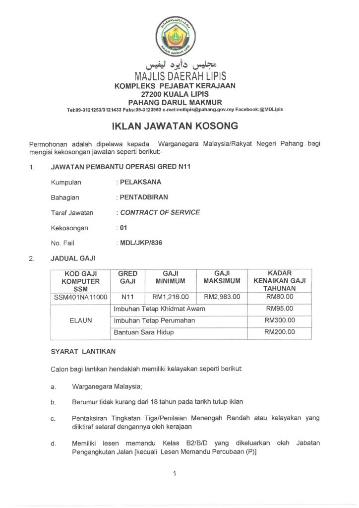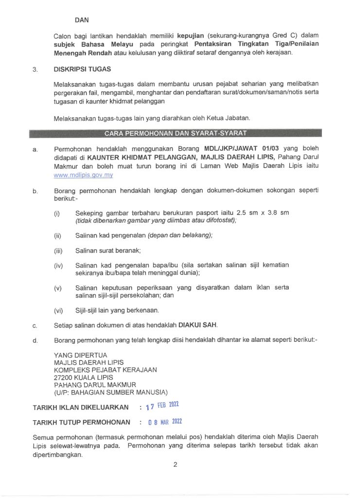 Iklan Jawatan Majlis Daerah Lipis