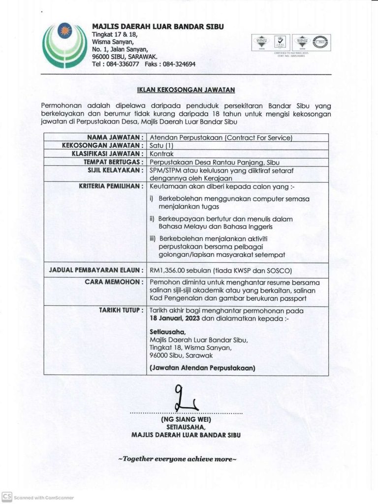 Iklan Jawatan Majlis Daerah Luar Bandar Sibu