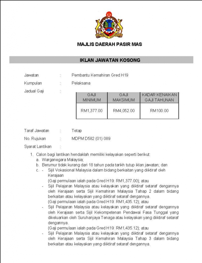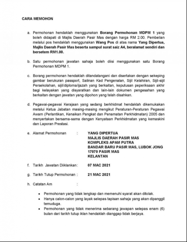 Iklan Jawatan Majlis Daerah Pasir Mas