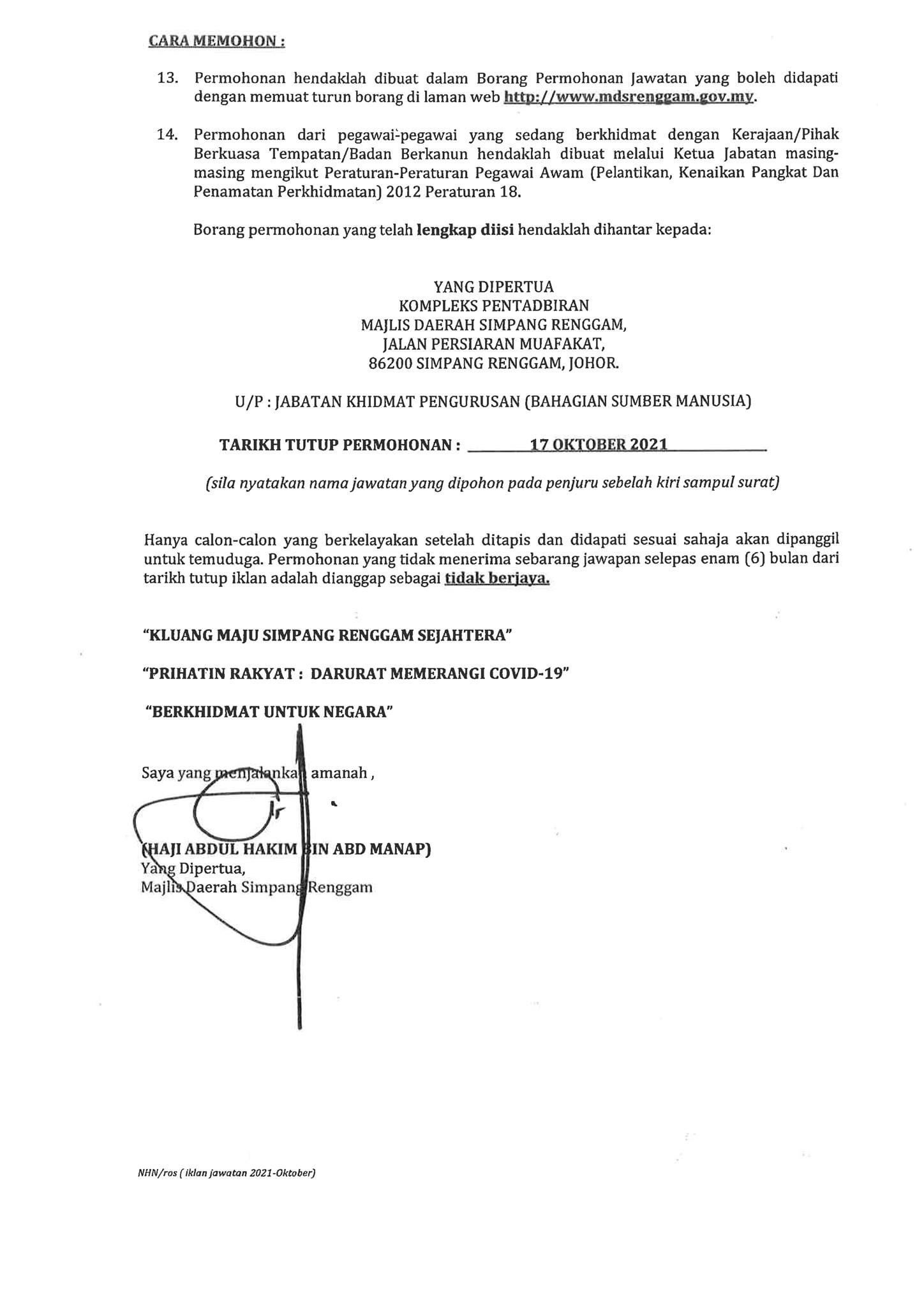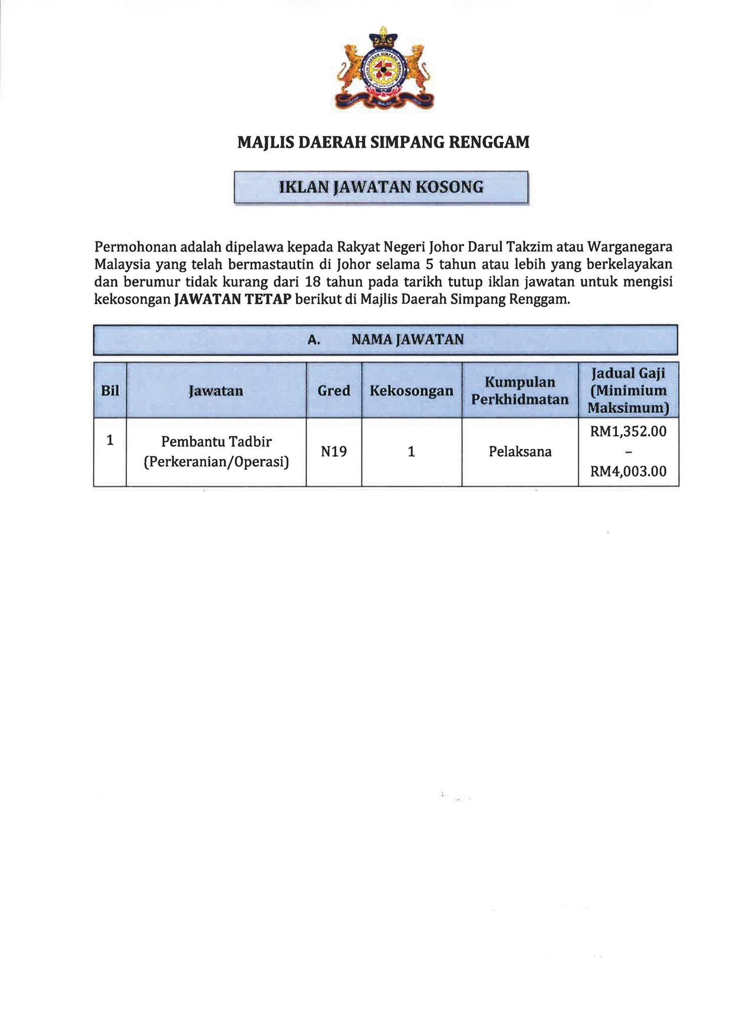 Iklan Jawatan Majlis Daerah Simpang Renggam