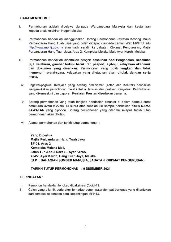 Iklan Jawatan Majlis Perbandaran Hang Tuah Jaya