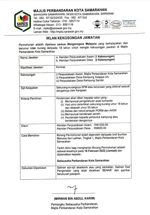 Iklan Jawatan Majlis Perbandaran Kota Samarahan