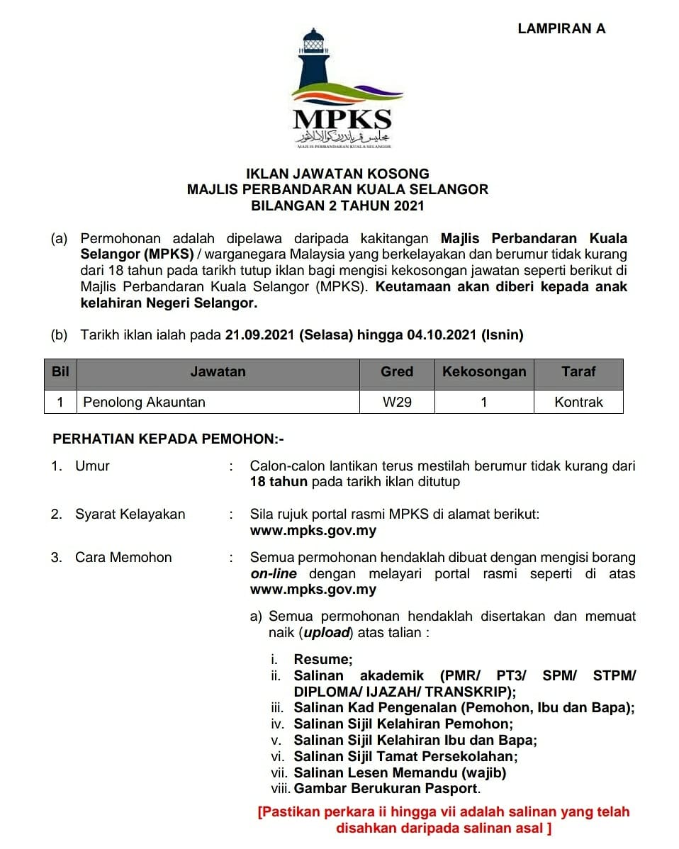 Iklan Jawatan Majlis Perbandaran Kuala Selangor