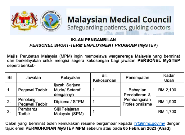 Iklan Jawatan Majlis Perubatan Malaysia (MPM)