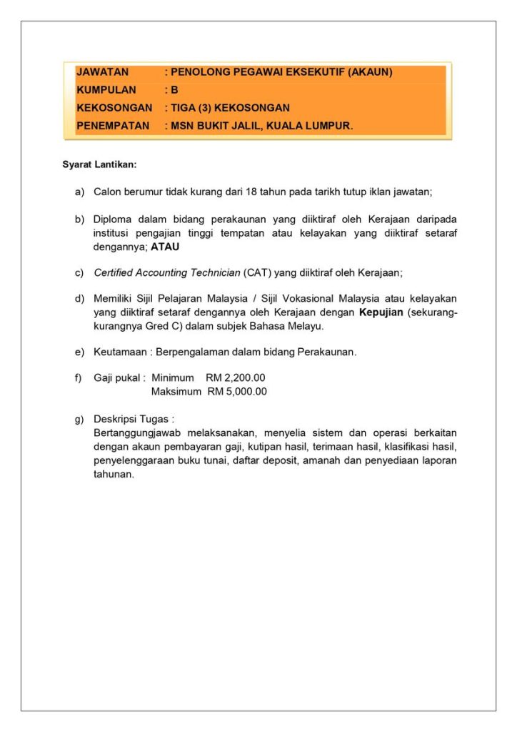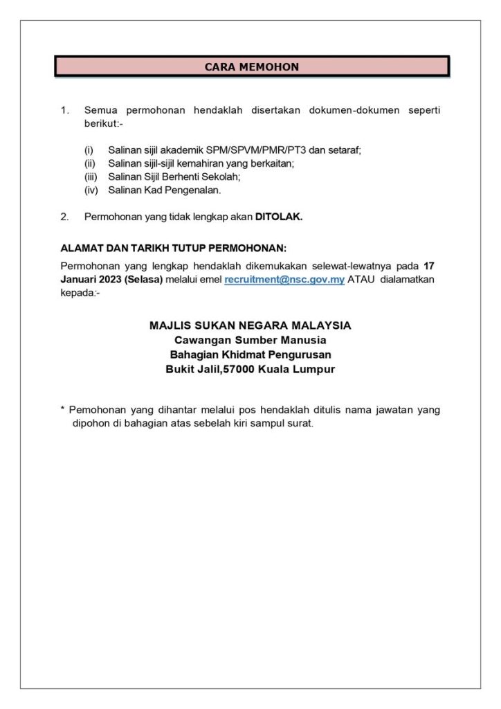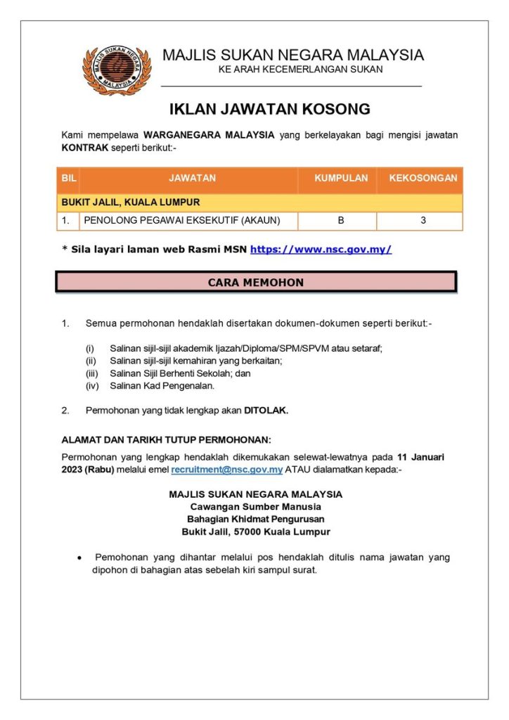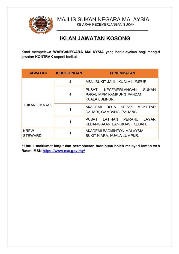 Iklan Jawatan Majlis Sukan Negara Malaysia (MSN)