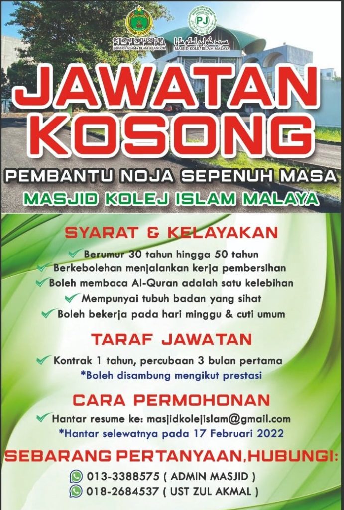 Iklan Jawatan Masjid Kolej Islam Malaya (MKIM)
