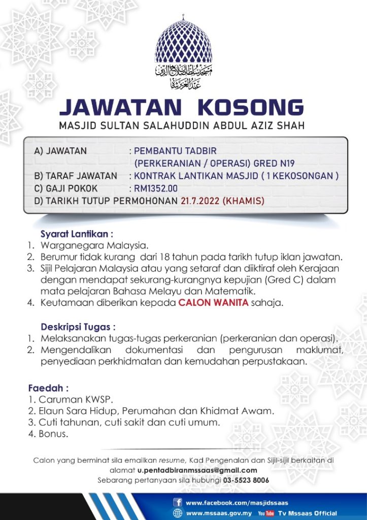 Iklan Jawatan Masjid Sultan Salahuddin Abdul Aziz Shah