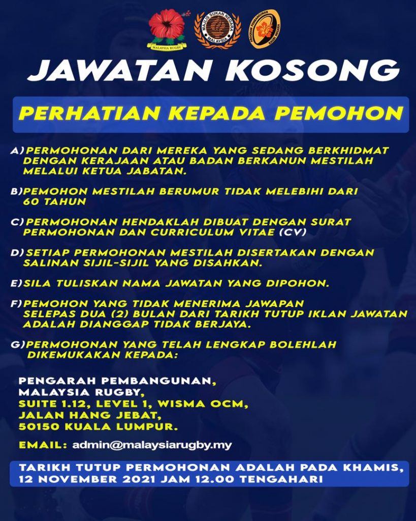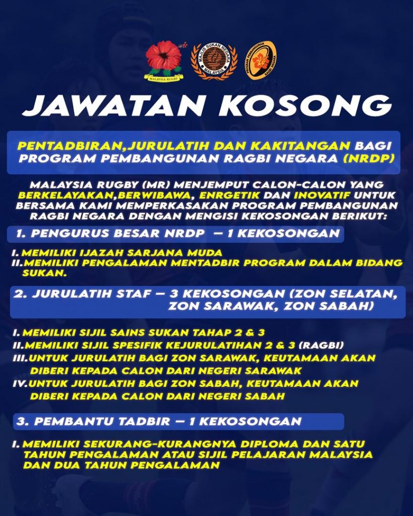 Iklan Jawatan Program Pembangunan Ragbi Negara