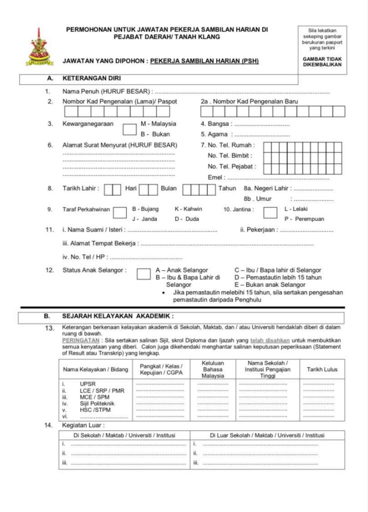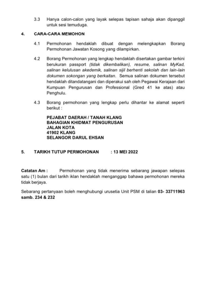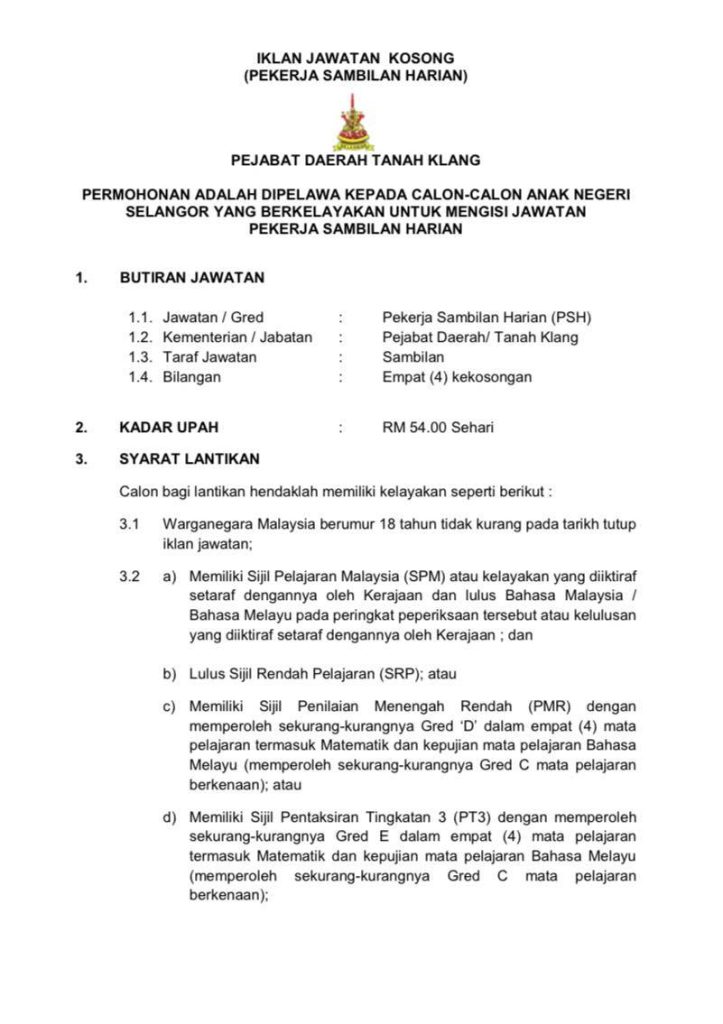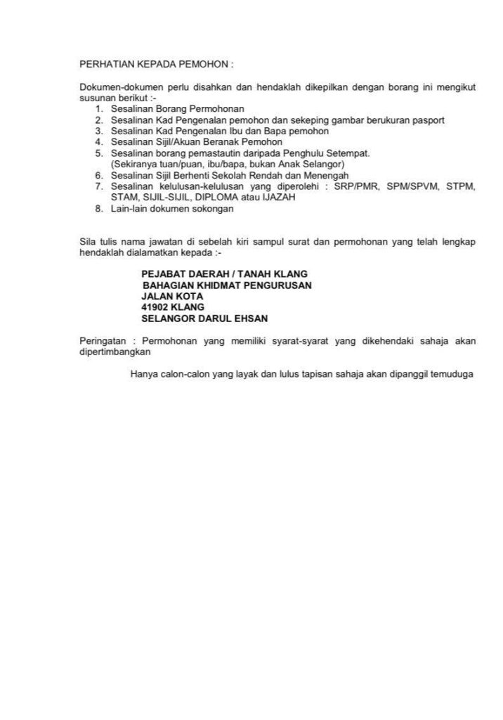 Iklan Jawatan Pejabat Daerah Dan Tanah Klang