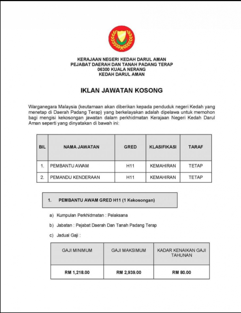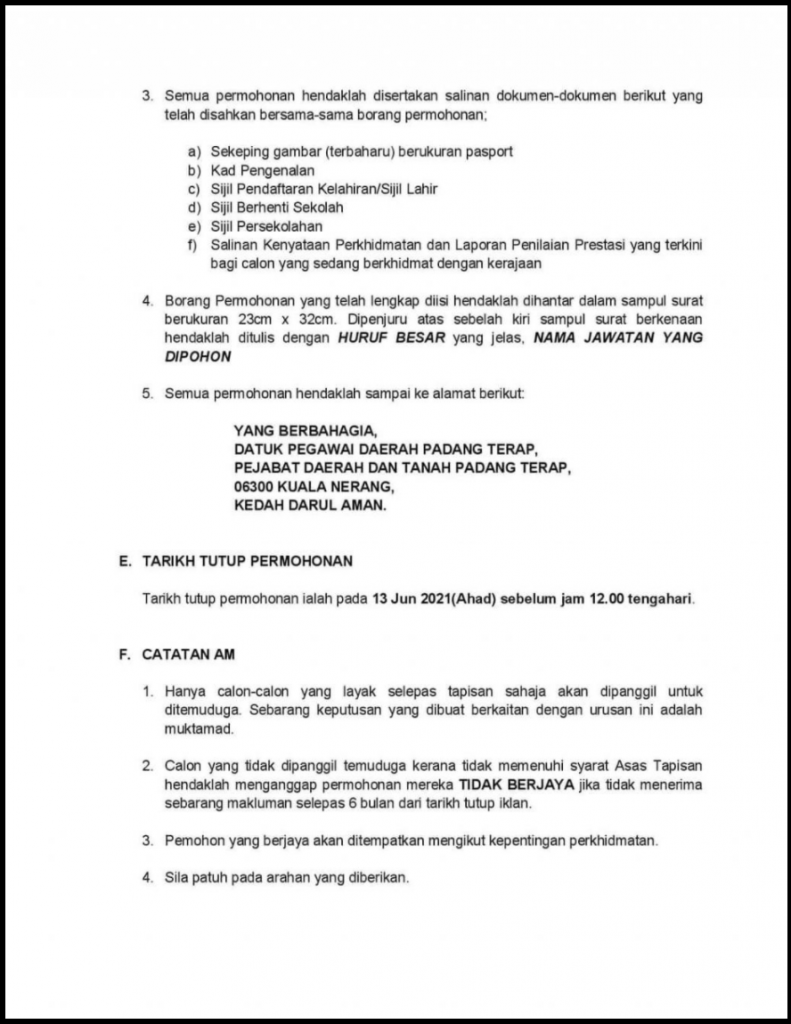 Iklan Jawatan Pejabat Daerah Dan Tanah Padang Terap