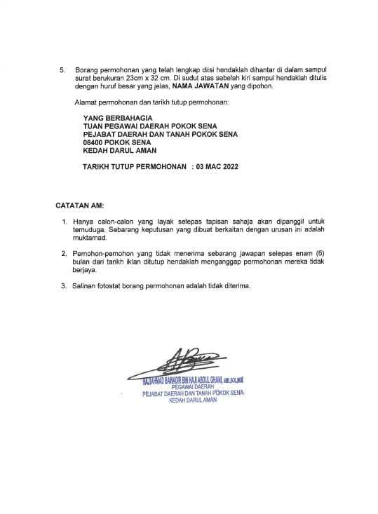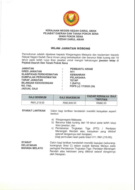 Iklan Jawatan Pejabat Daerah Dan Tanah Pokok Sena