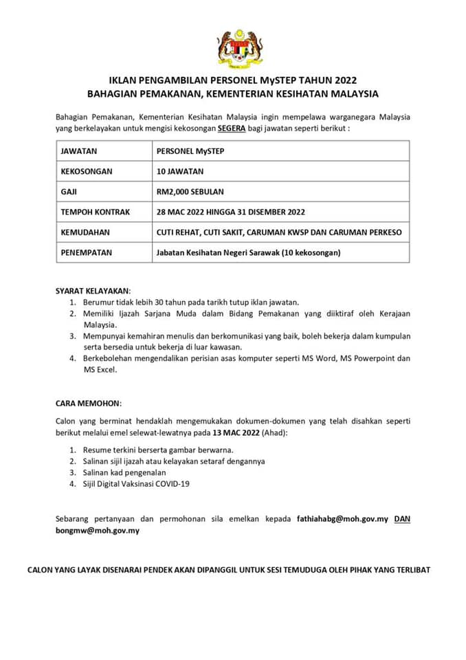 Iklan Jawatan Pejabat Kesihatan Bahagian Miri