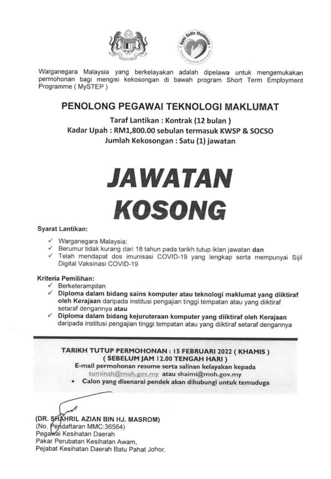 Iklan Jawatan Pejabat Kesihatan Batu Pahat
