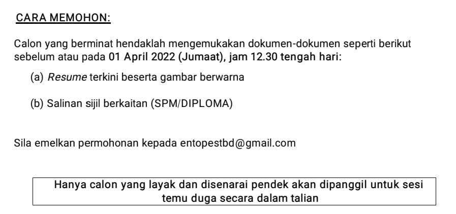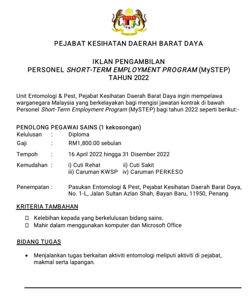 Iklan Jawatan Pejabat Kesihatan Daerah Barat Daya