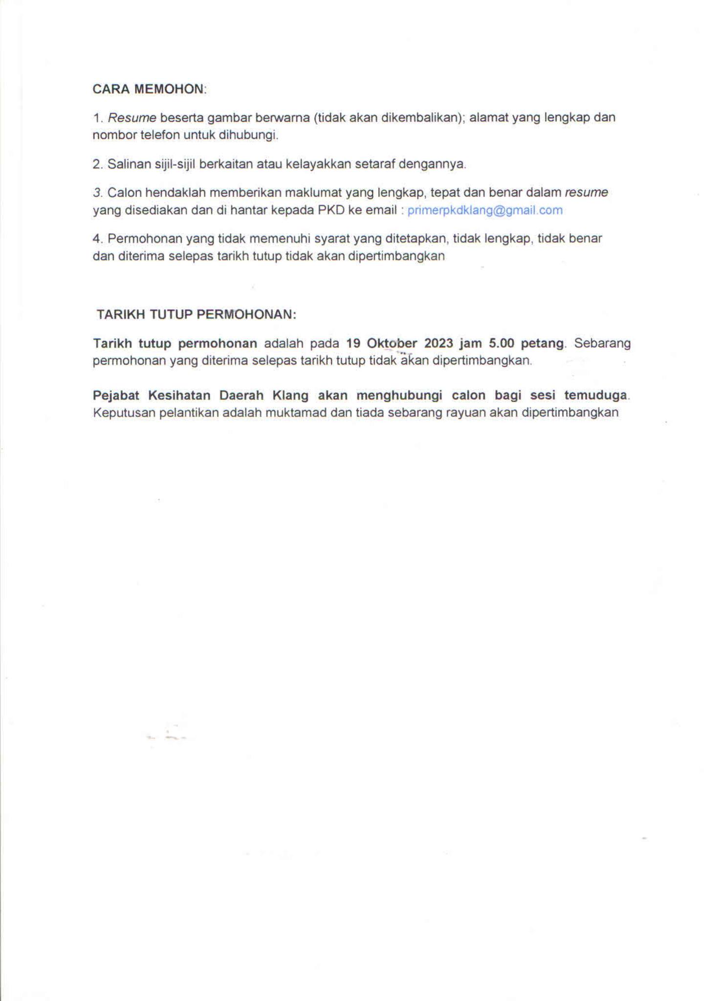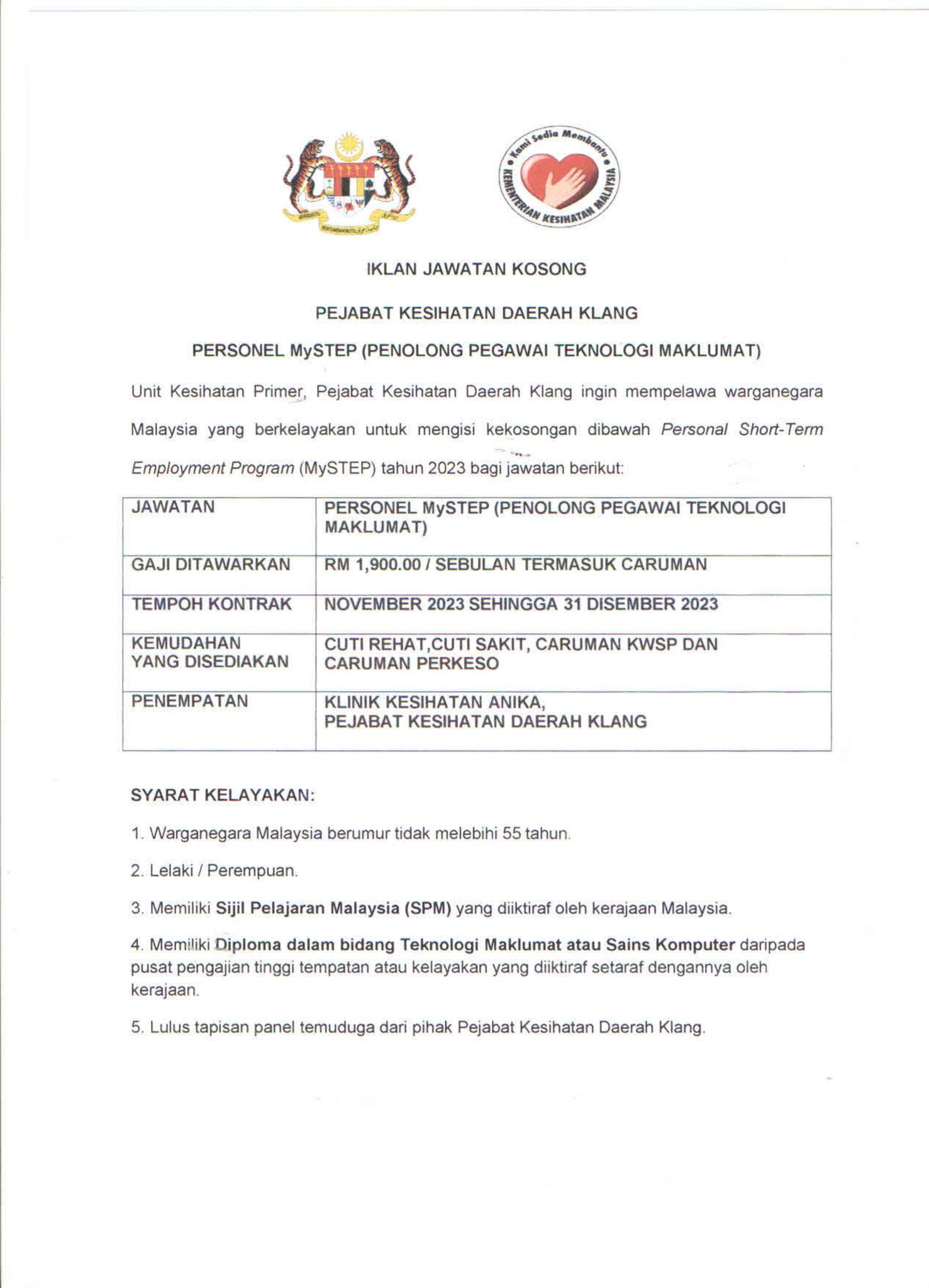 Iklan Jawatan Pejabat Kesihatan Daerah Klang