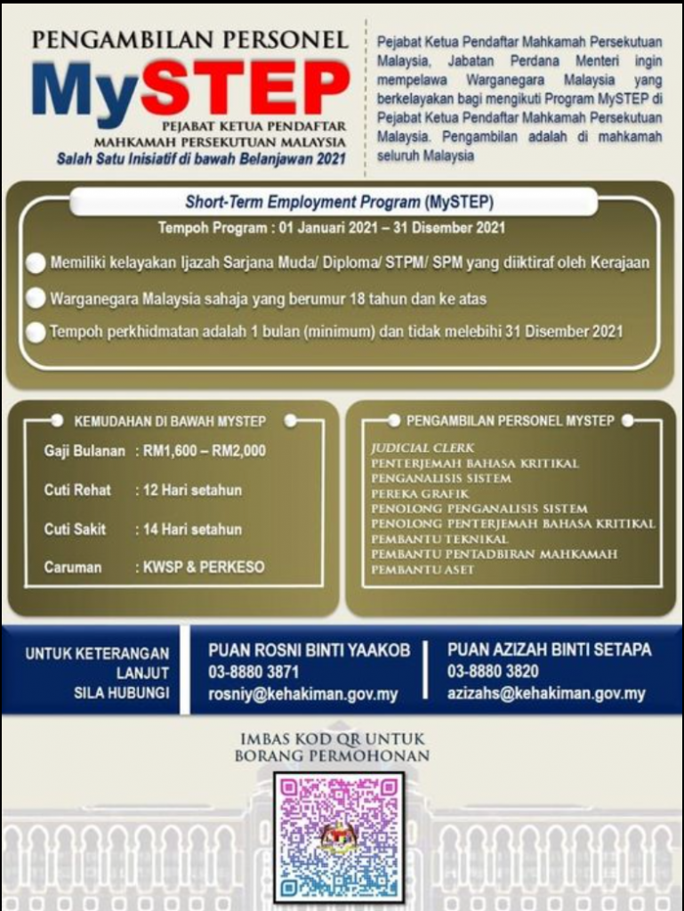 Iklan Jawatan Pejabat Ketua Pendaftar Mahkamah Persekutuan Malaysia (PKPMP)