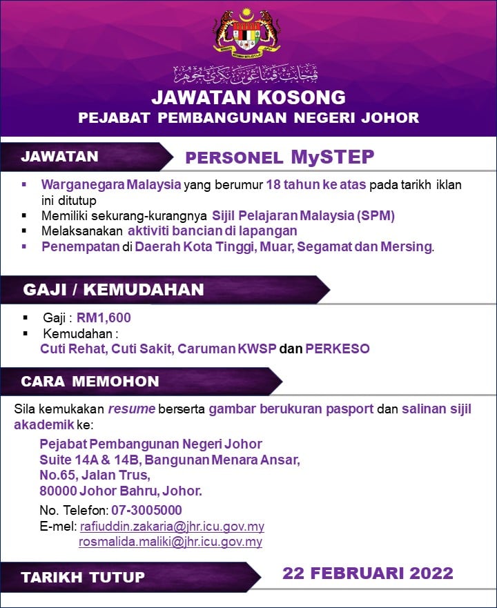 Iklan Jawatan Pejabat Pembangunan Negeri Johor