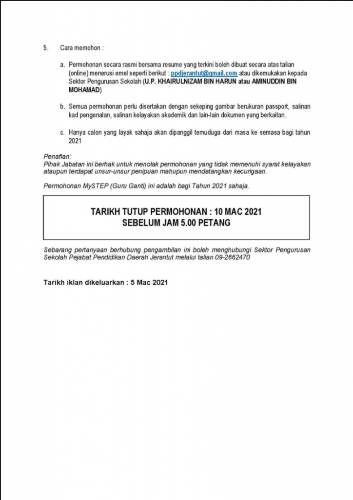 Iklan Jawatan Pejabat Pendidikan Daerah Jerantut