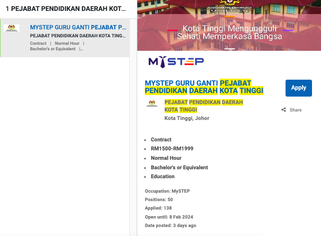 Iklan Jawatan Pejabat Pendidikan Daerah Kota Tinggi