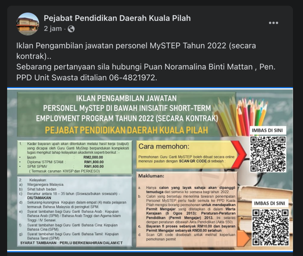 Iklan Jawatan Pejabat Pendidikan Daerah Kuala Pilah