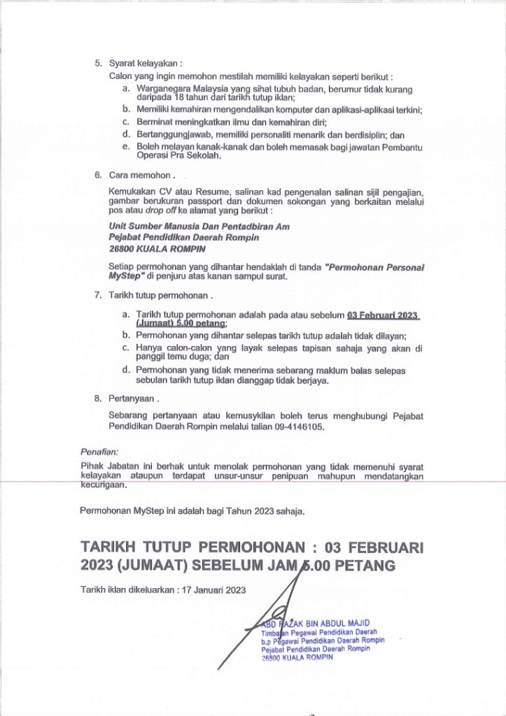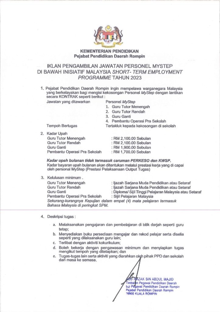 Iklan Jawatan Pejabat Pendidikan Daerah Rompin