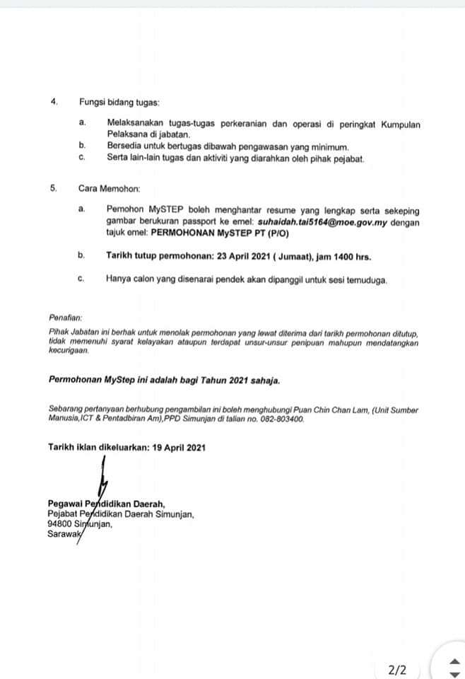 Iklan Jawatan Pejabat Pendidikan Daerah Simunjan