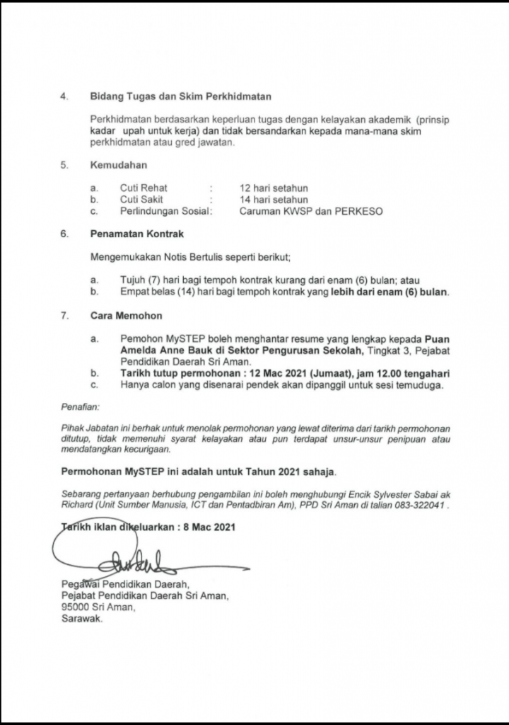 Iklan Jawatan Pejabat Pendidikan Daerah Sri Aman