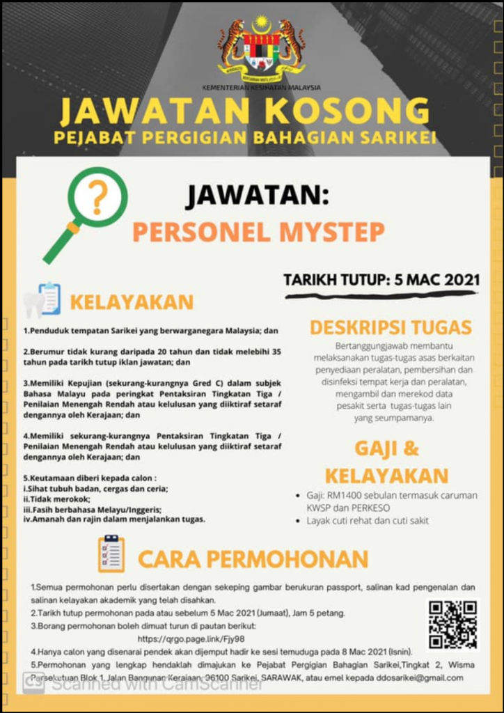 Iklan Jawatan Pejabat Pergigian Bahagian Sarikei