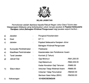 Iklan Jawatan Pejabat Setiausaha Kerajaan Negeri Johor