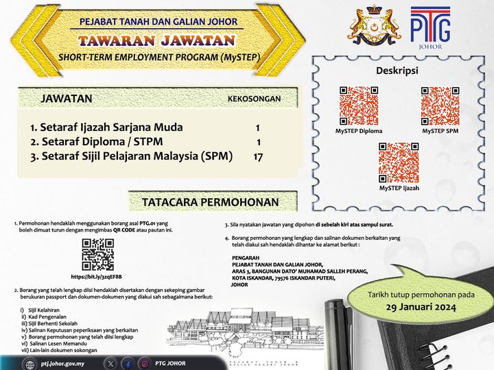 Iklan Jawatan Pejabat Tanah Dan Galian Negeri Johor