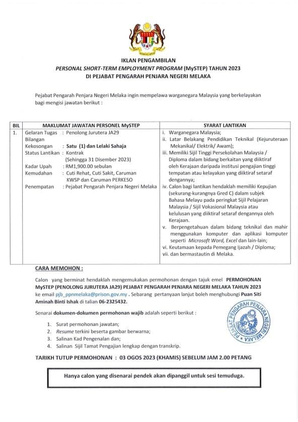 Iklan Jawatan Penjara Negeri Melaka