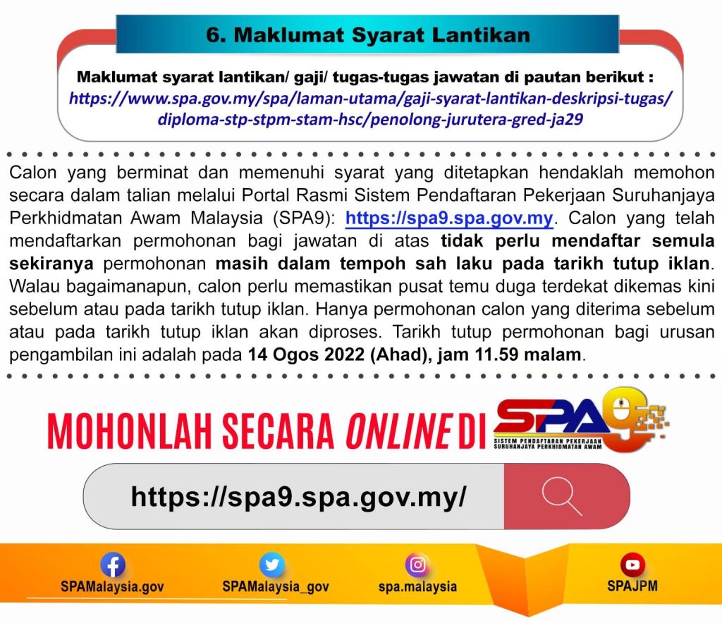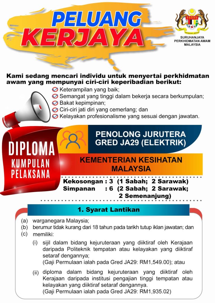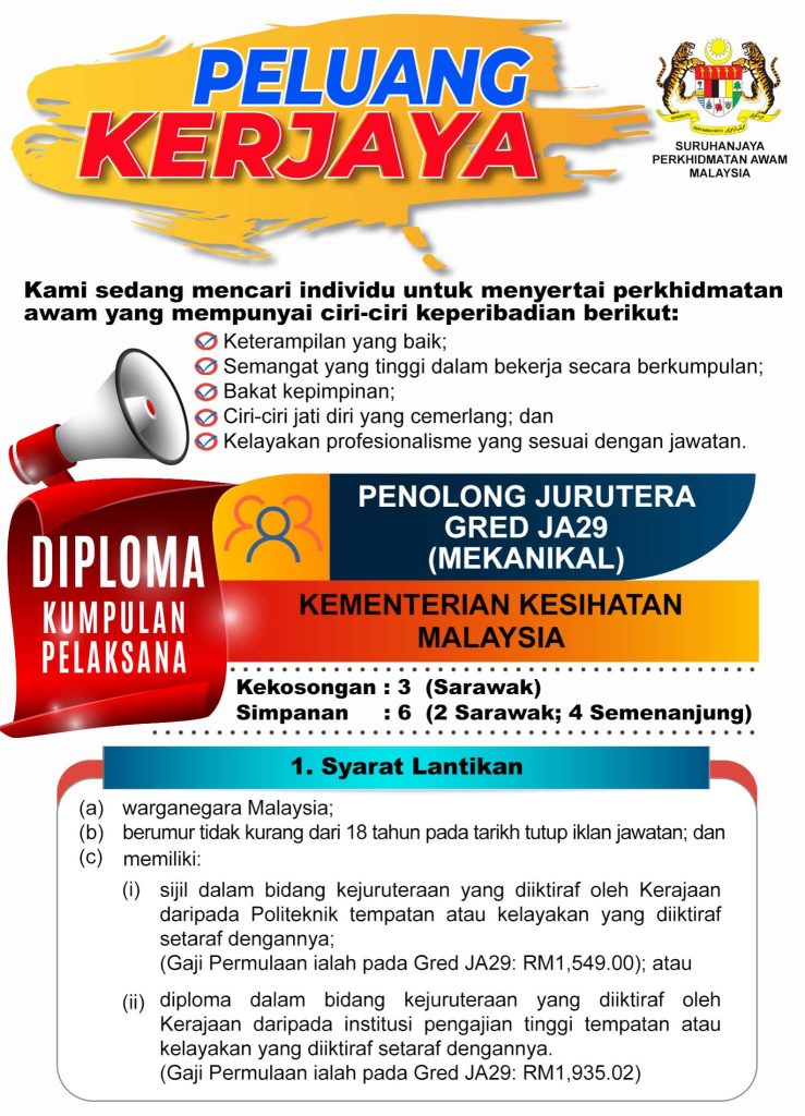 Iklan Jawatan Penolong Jurutera JA29 KKM