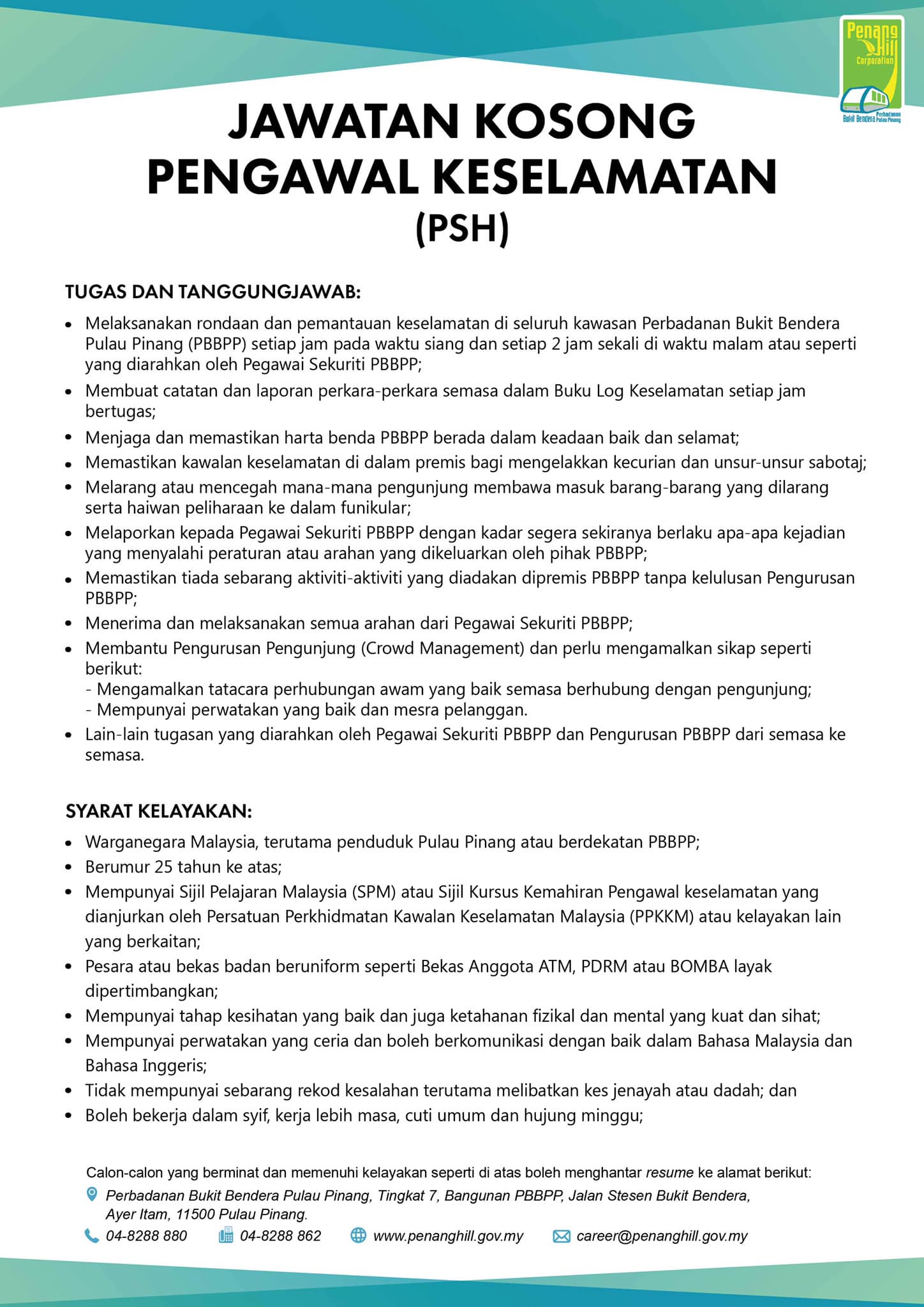 Iklan Jawatan Perbadanan Bukit Bendera Pulau Pinang