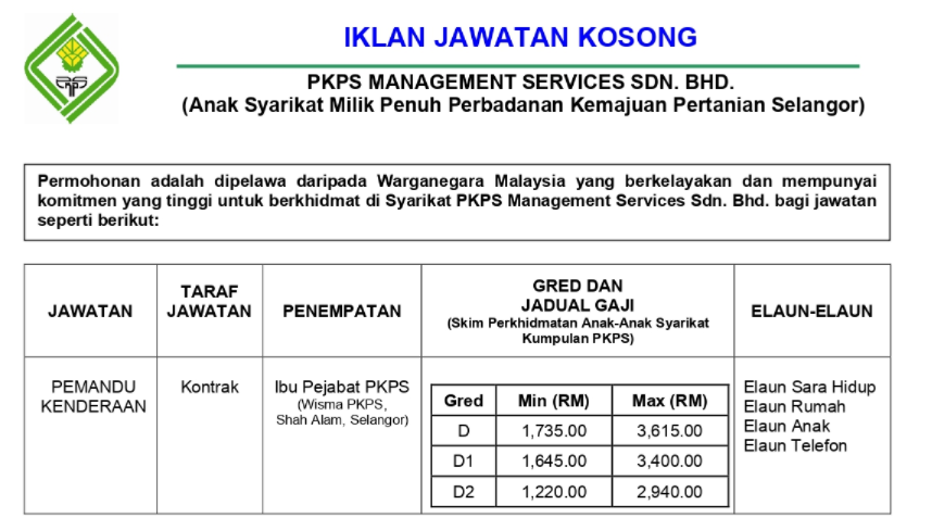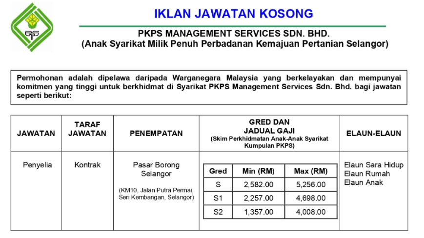 Iklan Jawatan Perbadanan Kemajuan Pertanian Selangor (PKPS)