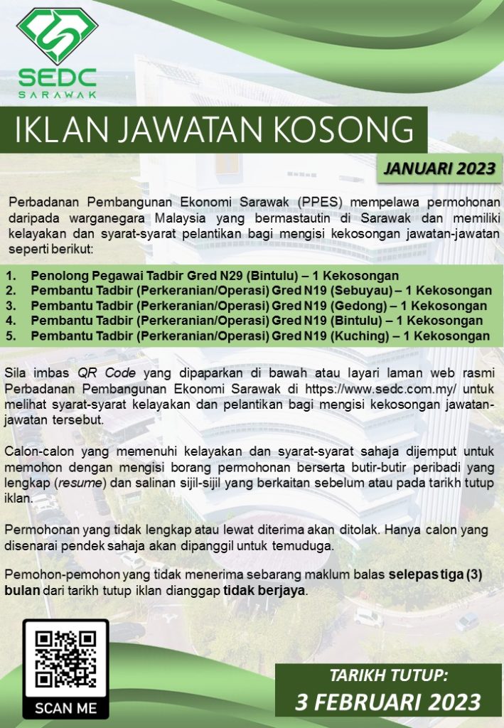 Iklan Jawatan Perbadanan Pembangunan Ekonomi Sarawak (SEDC)