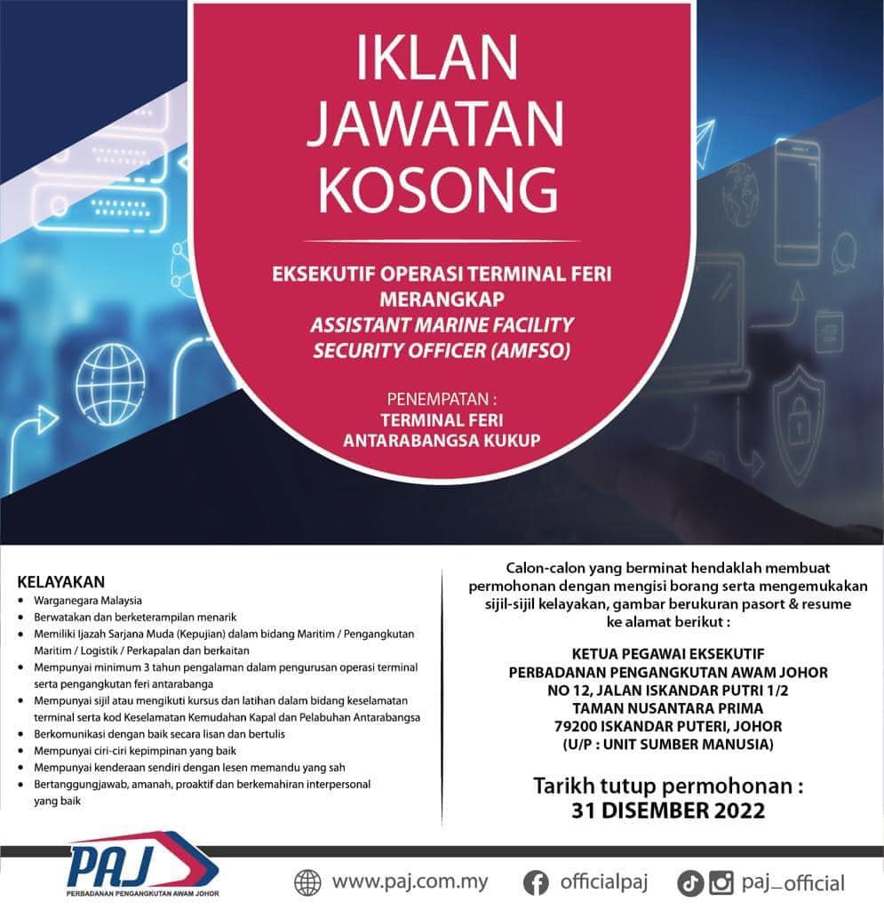 Iklan Jawatan Perbadanan Pengangkutan Awam Johor