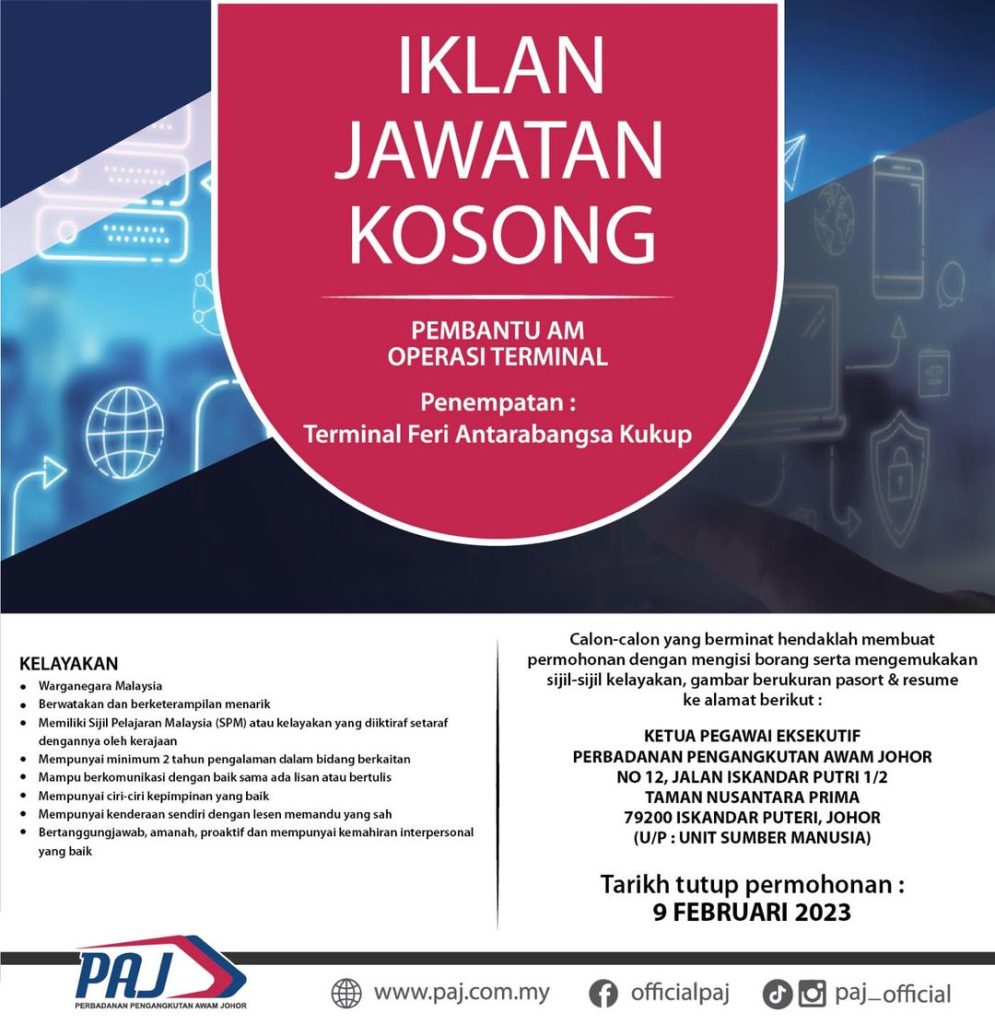 Iklan Jawatan Perbadanan Pengangkutan Awam Johor (PAJ)