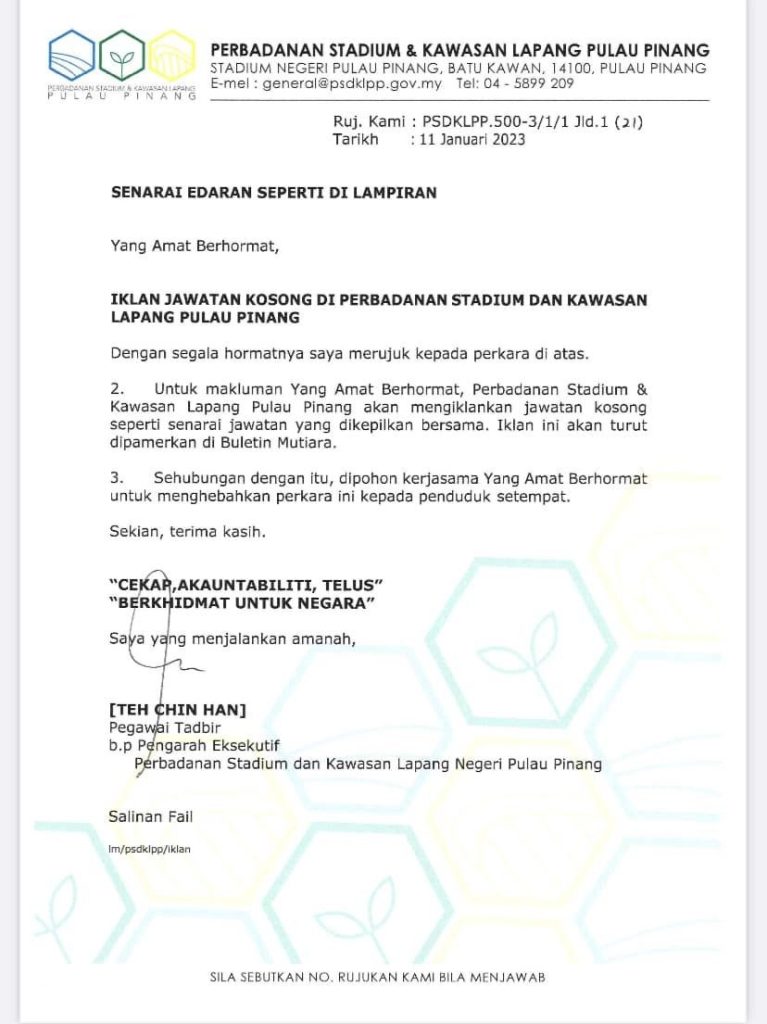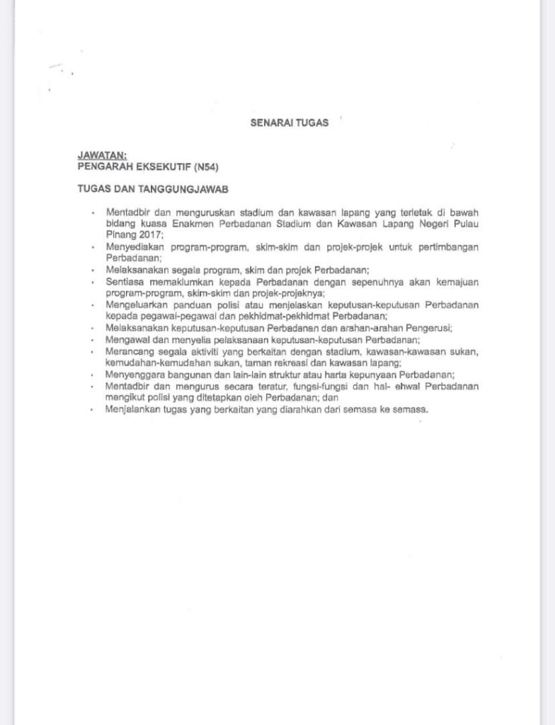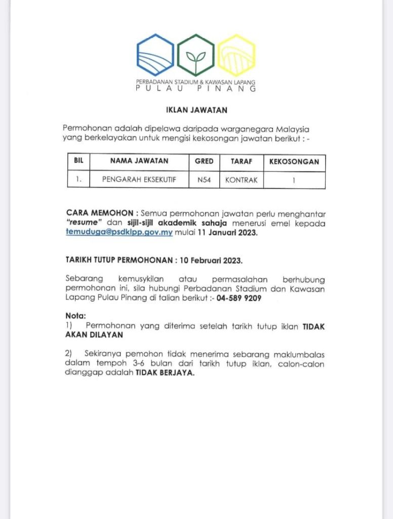 Iklan Jawatan Perbadanan Stadium Dan Kawasan Lapang Pulau Pinang