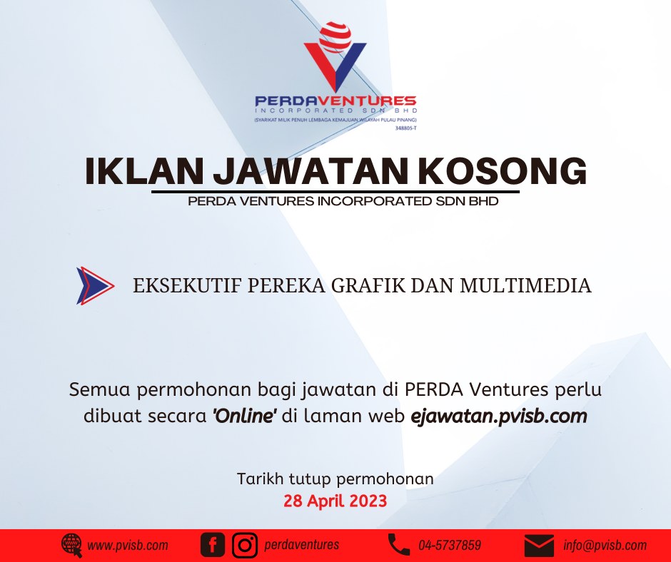 Iklan Jawatan PERDA Ventures Incorporated Sdn Bhd (PVISB)