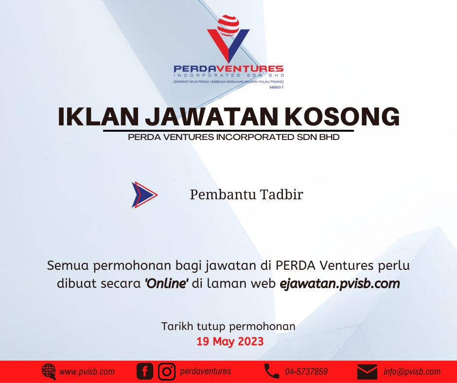 Iklan Jawatan PERDA Ventures Incorporated Sdn Bhd (PVISB)