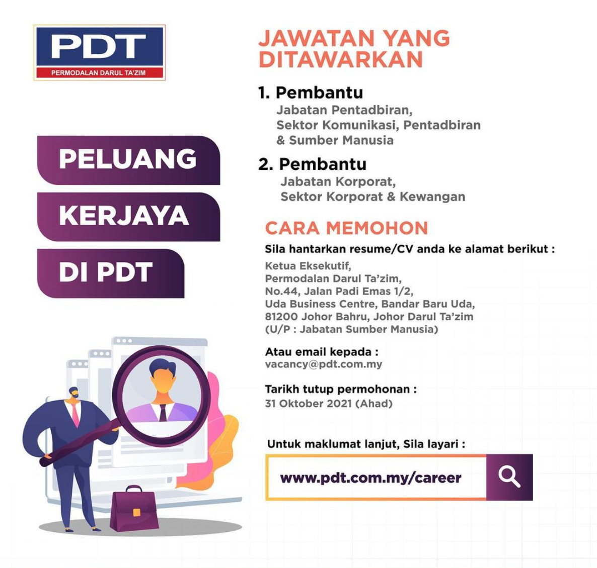 Iklan Jawatan Permodalan Darul Ta’zim (PDT)