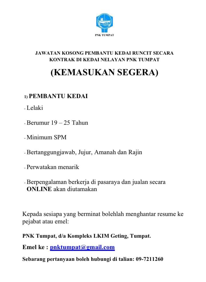 Iklan Jawatan Persatuan Nelayan Kawasan (PNK) Tumpat