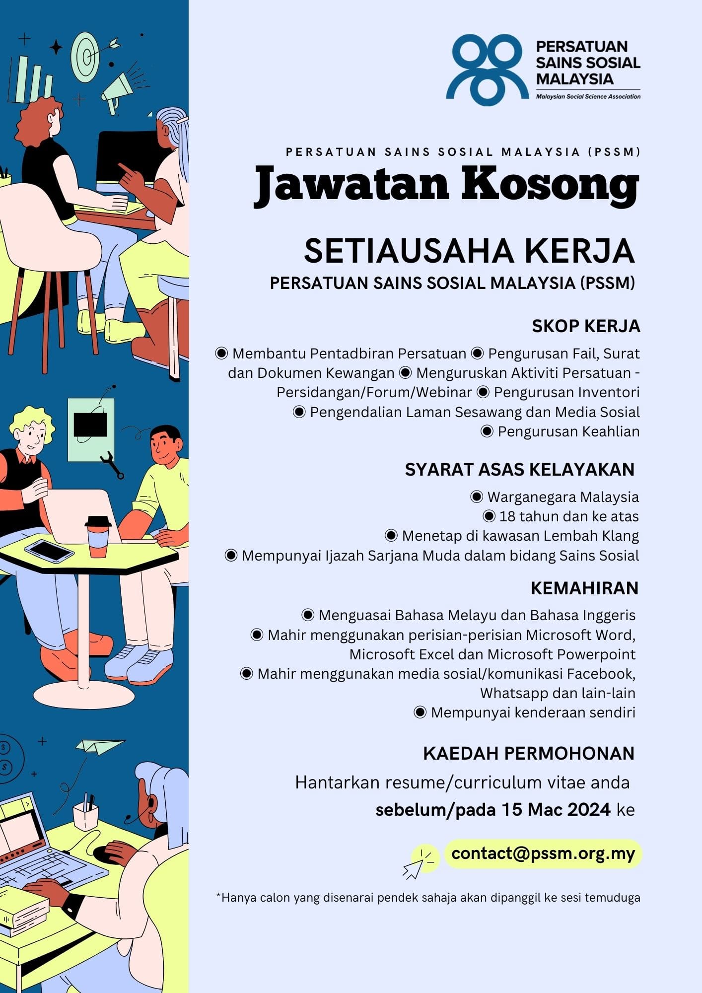 Iklan Jawatan Persatuan Sains Sosial Malaysia (PSSM)