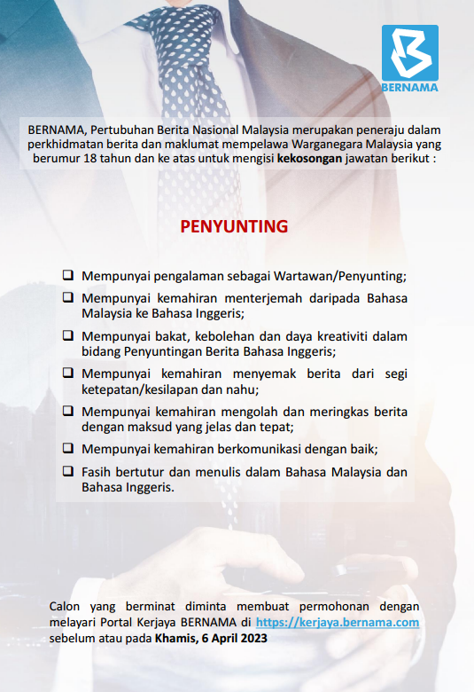 Iklan Jawatan Pertubuhan Berita Nasional Malaysia (BERNAMA)