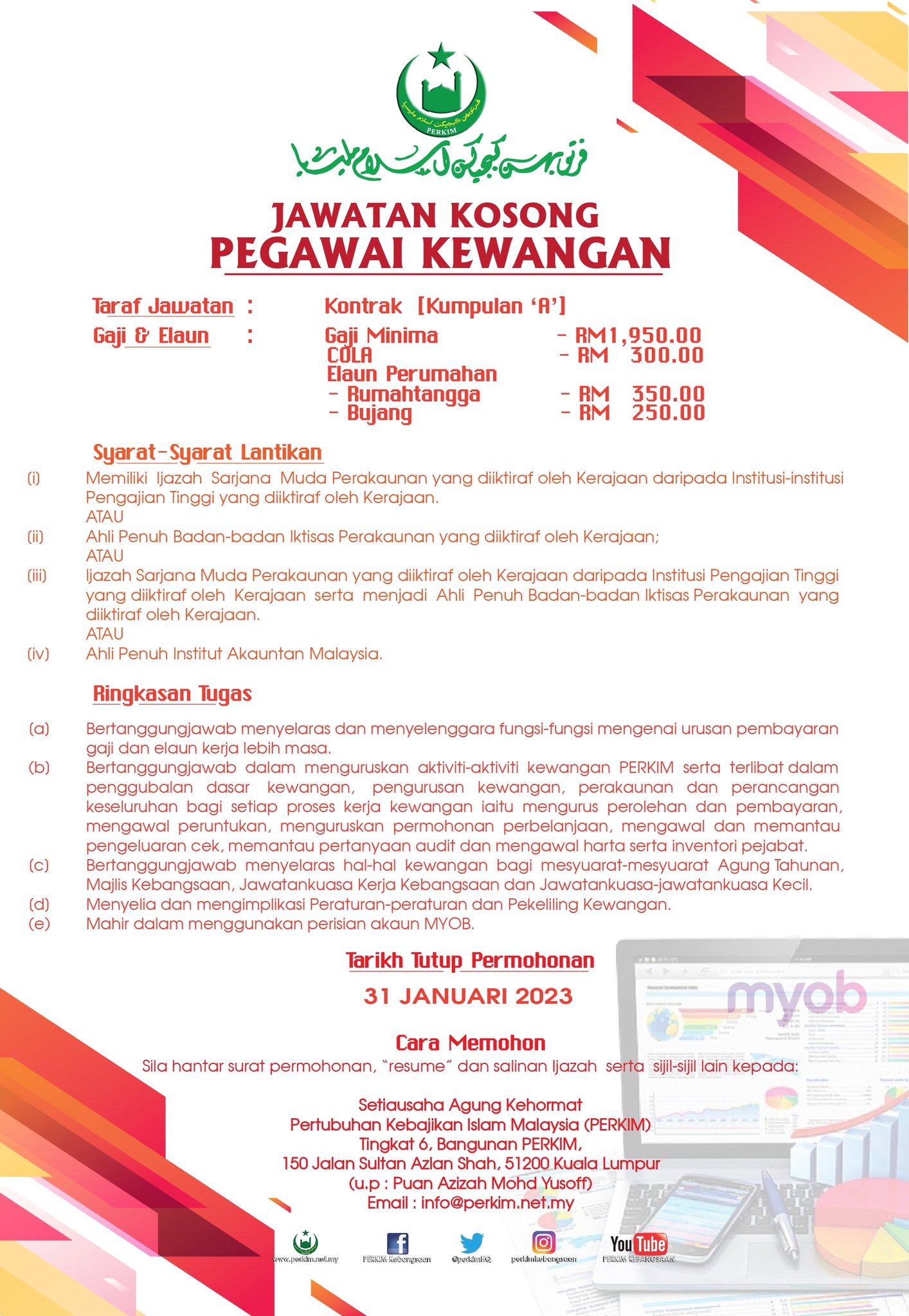Iklan Jawatan Pertubuhan Kebajikan Islam Malaysia (PERKIM)