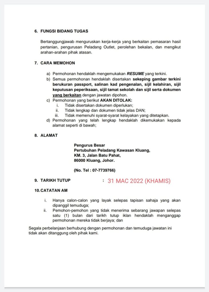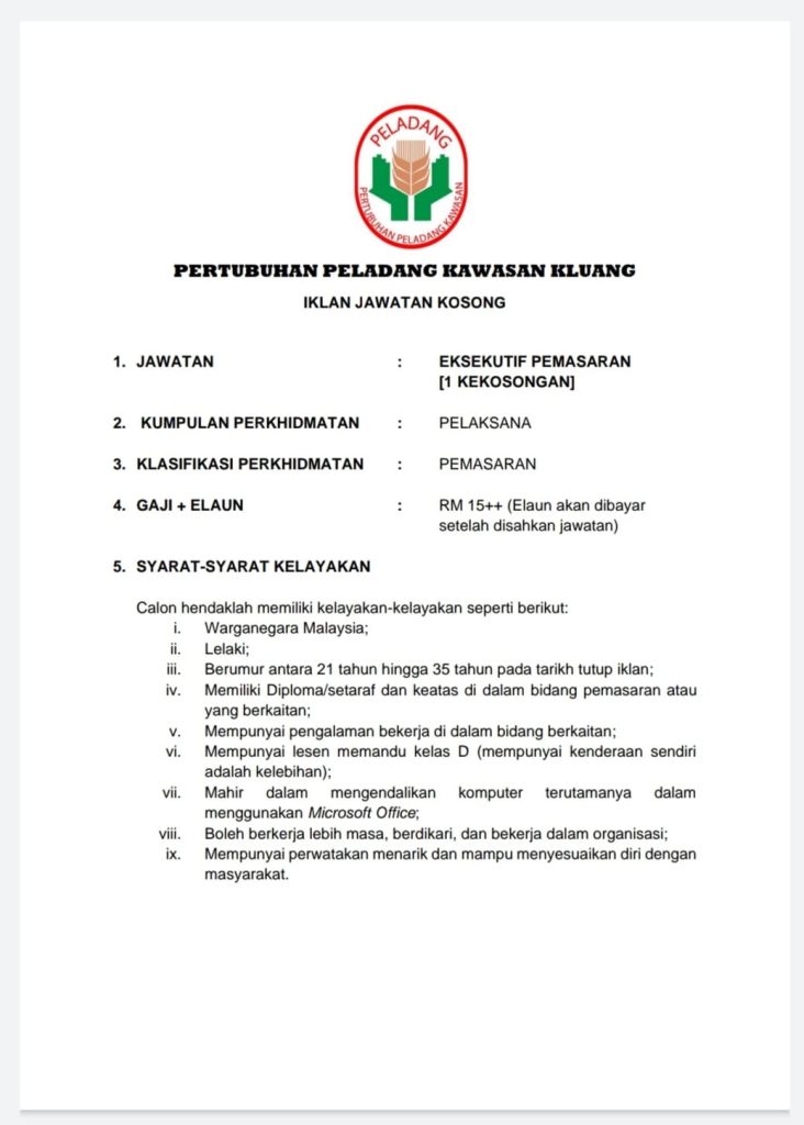 Iklan Jawatan Pertubuhan Peladang Kawasan Kluang