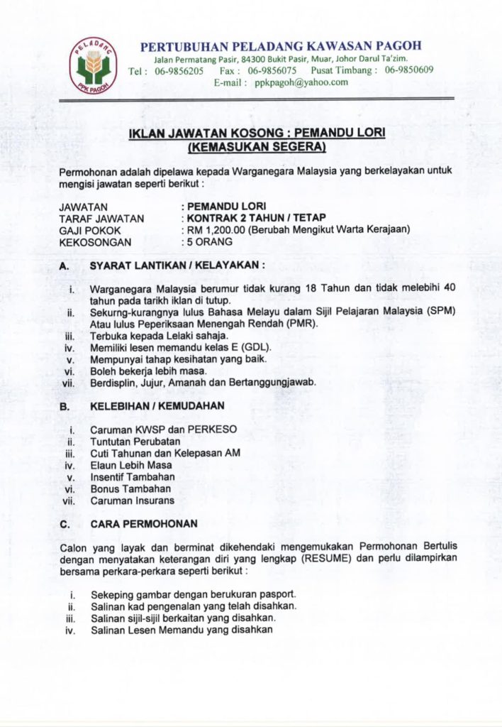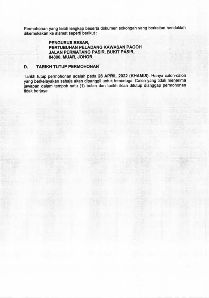Iklan Jawatan Pertubuhan Peladang Kawasan Pagoh