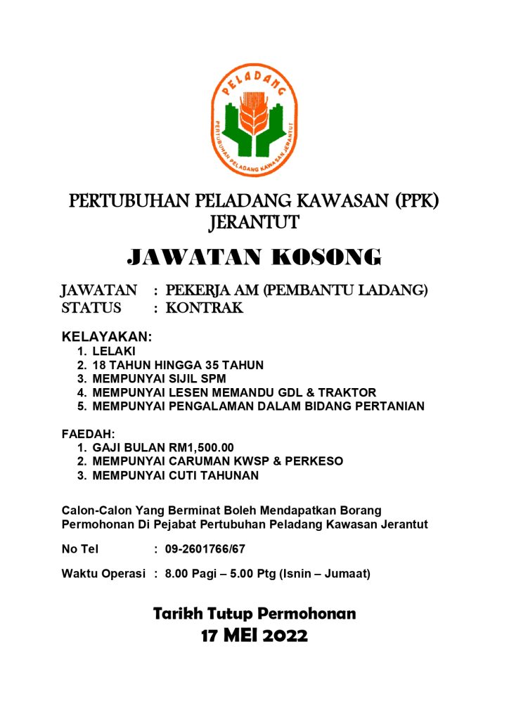 Iklan Jawatan Pertubuhan Peladang Kawasan (PPK) Jerantut