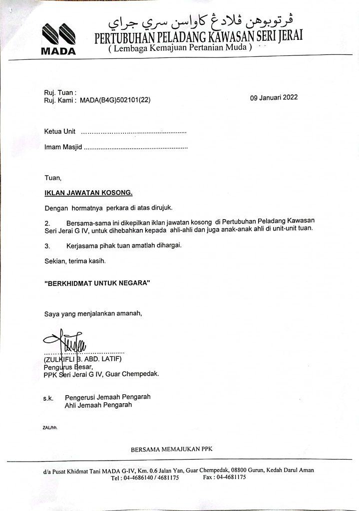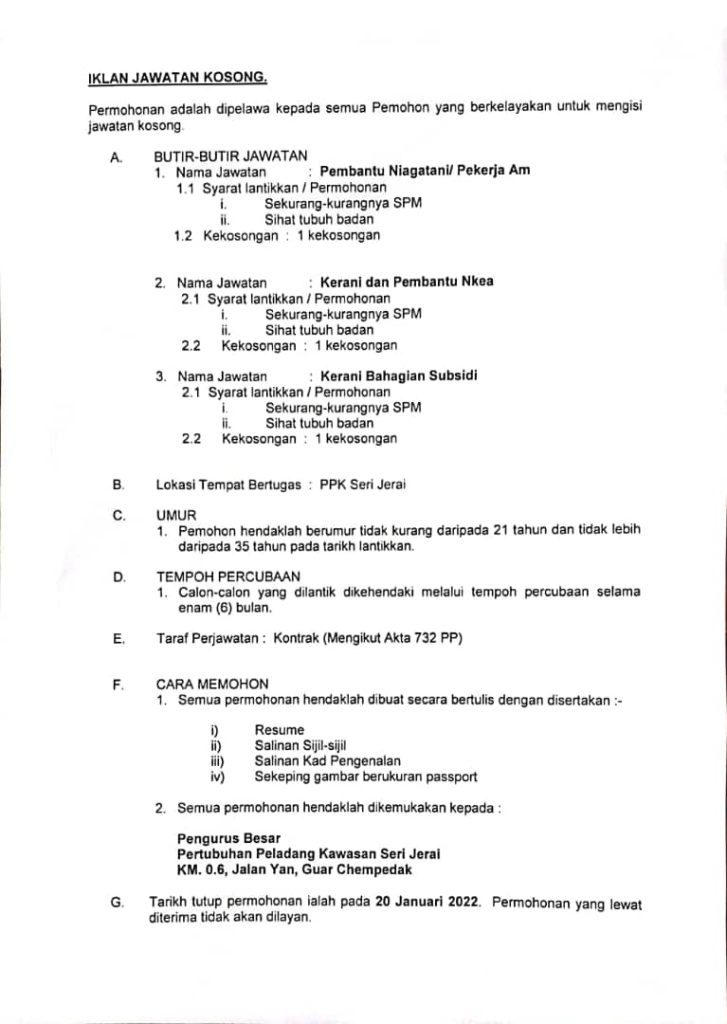 Iklan Jawatan Pertubuhan Peladang Kawasan Seri Jerai